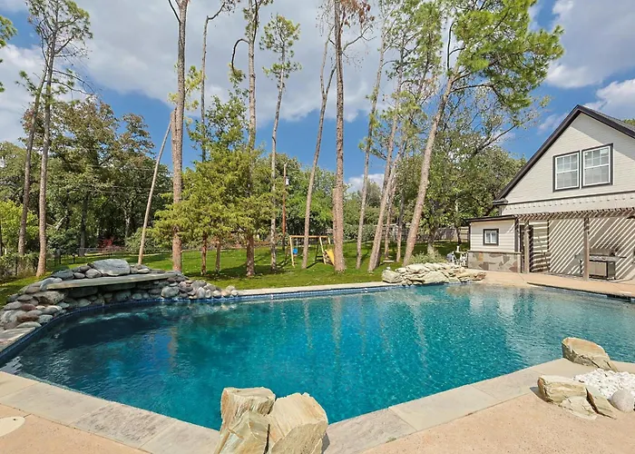 Your Rustic Retreat W Backyard Oasis Pool Patio bietet eine erholsame Auszeit im Herzen der Natur, ideal gelegen für alle, die dem hektischen Alltag entfliehen möchten. Umgeben von üppigem Grün und einem malerischen Garten, lädt dieses großzügige Retreat dazu ein, die Seele baumeln zu lassen.